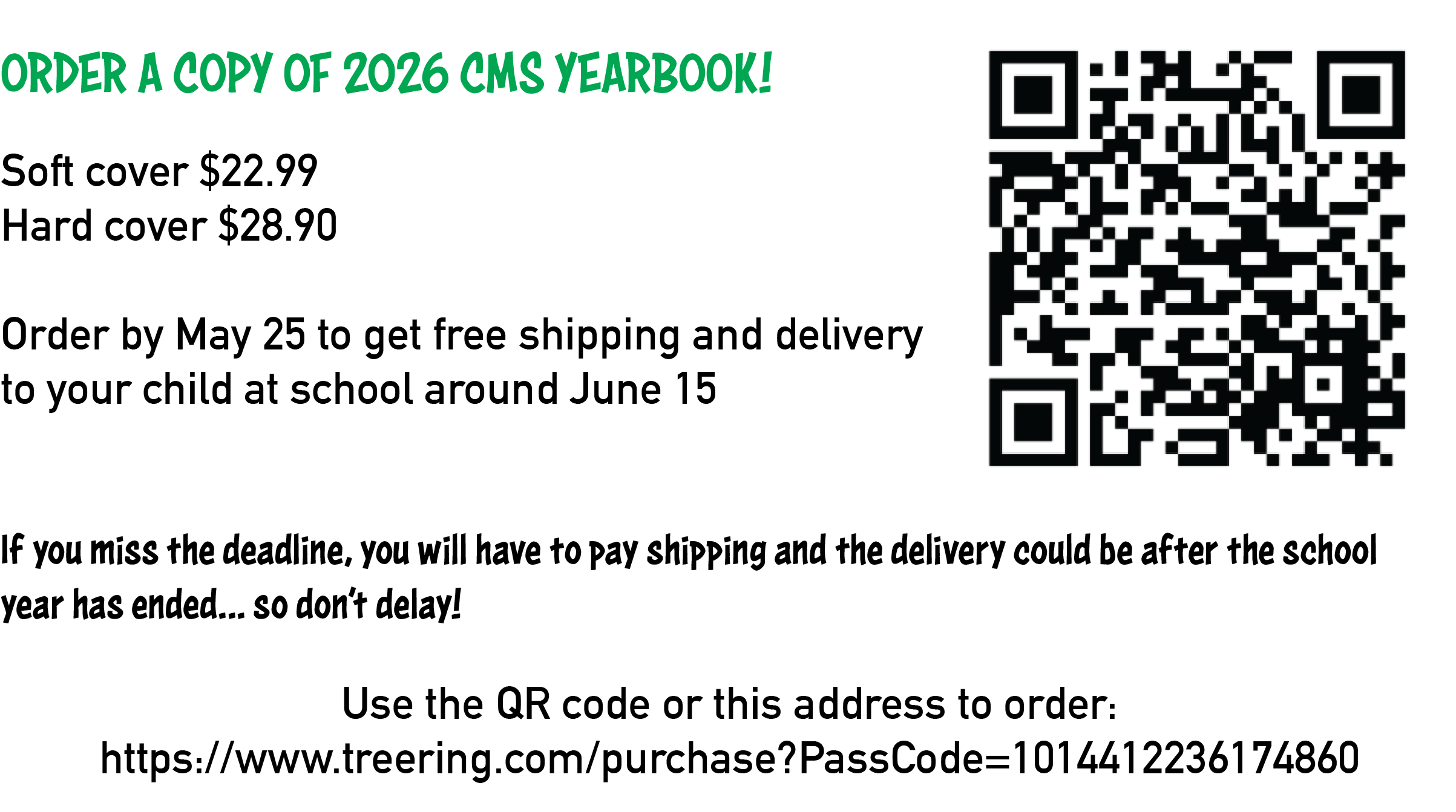Please see the attached link to order your 2026 Cawley Yearbook. Order before May 25th to get free shipping and delivery to your child at school around June 15th! Yearbook order